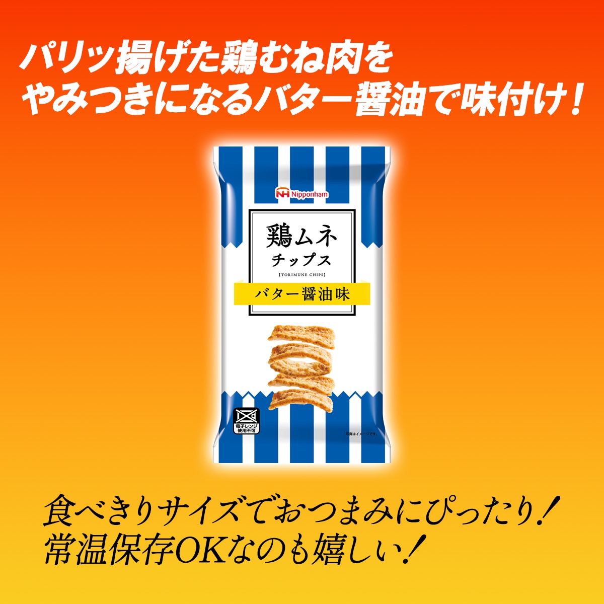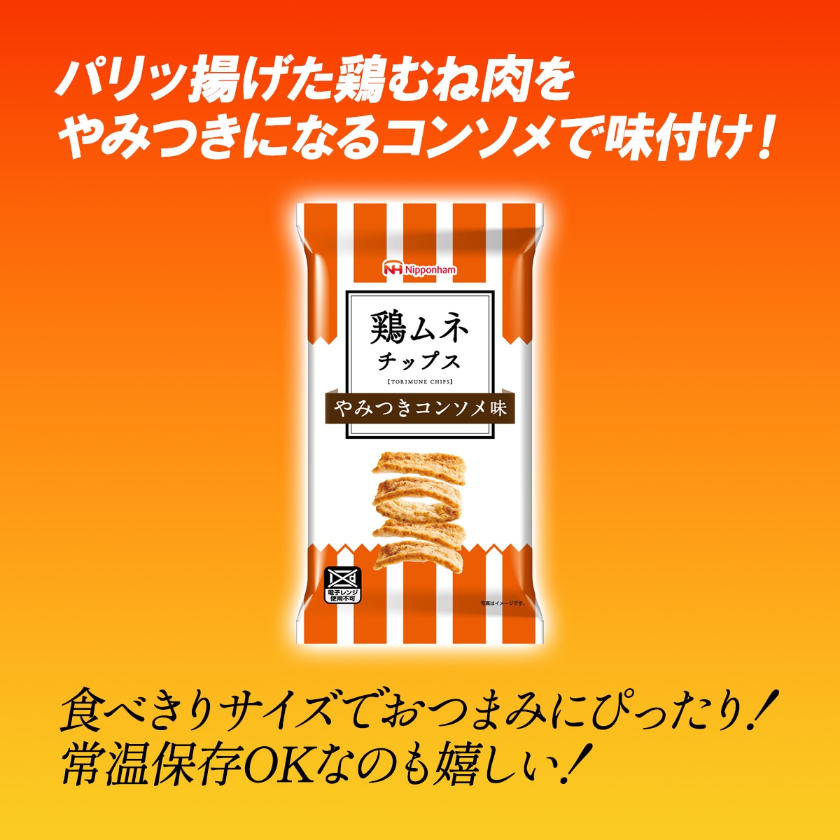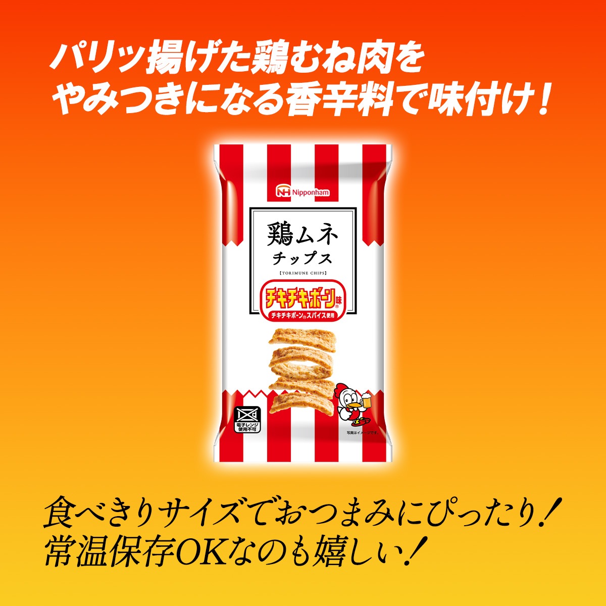 ・鶏ムネチップスチキチキボーン味27g ・鶏ムネチップスやみつきコンソメ味27g ・鶏ムネチップスバター醤油味27g ・乾燥させた生ハム20g ・豚ばら肉を乾燥させた豚とば15g ・乾燥させたピリ旨辛豚皮15g |