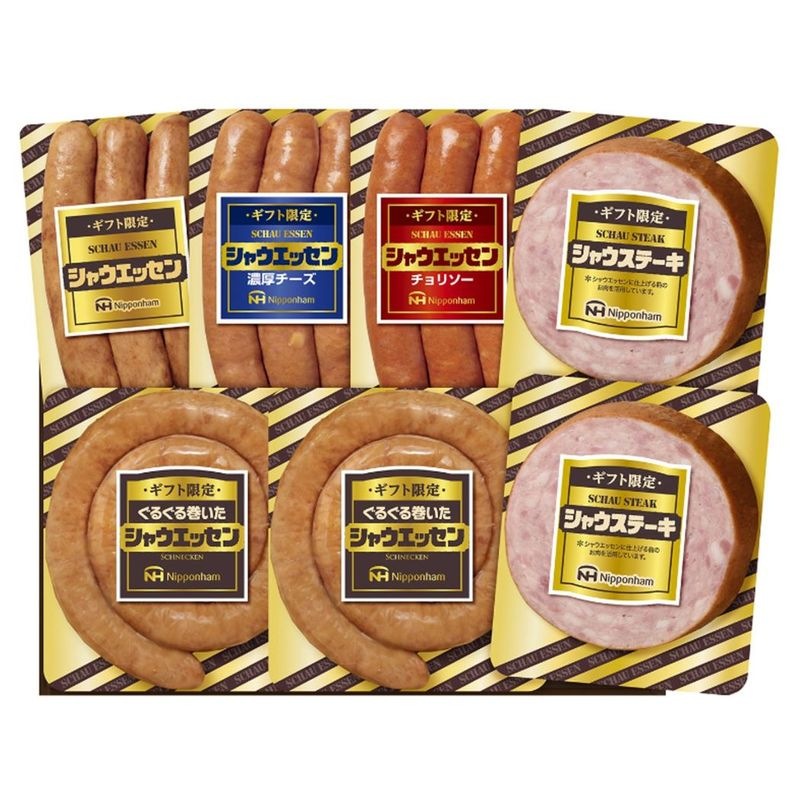 | セット内容 | ・ギフト限定)シャウエッセン100g ・ギフト限定)シャウエッセン濃厚チーズ100g ・ギフト限定)シャウエッセンチョリソー100g ・ギフト限定)シャウステーキ122g×2 ・ギフト限定)ぐるぐる巻いたシャウエッセン122g×2 |
