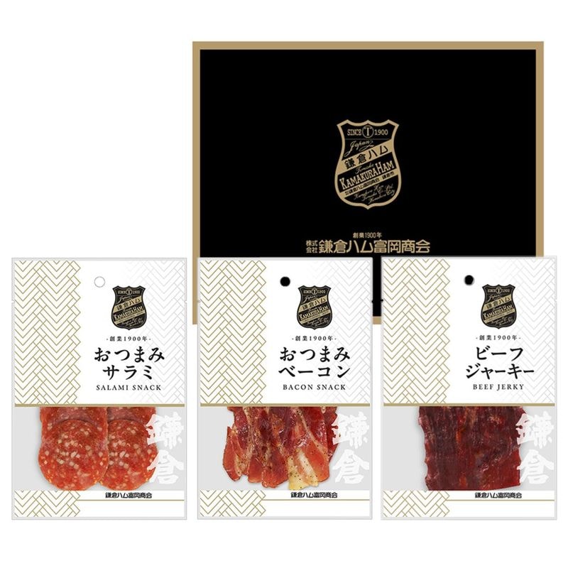 ・ビーフジャーキー17g ・鎌倉おつまみベーコン24g ・鎌倉おつまみサラミ36g |